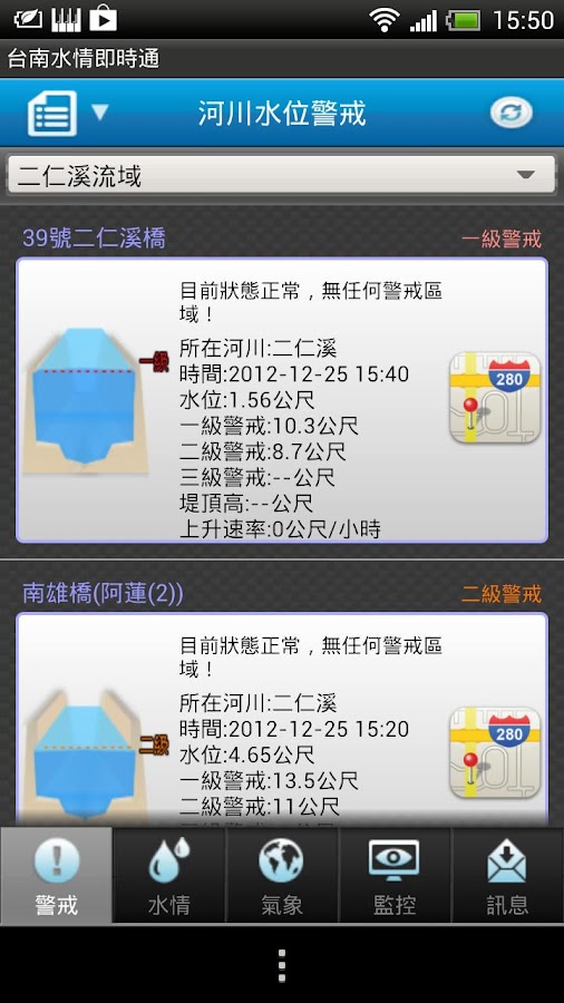 水利署新避災工具 「行動水情APP」即時追蹤淹水資訊 | ETtoday生活新聞 | ETtoday 新聞雲 from static.ettoday.net 台灣, 水情, 鋒面, 中央氣象局, 氣象, 梅雨季. The site owner hides the web page description. 資料來源:經濟部水利署 即時水情資料係自記儀器自動產生,未經人工完整檢驗,僅提供參考。 預測剩餘天數 = 即時有效蓄水量/昨日下降蓄水量。 因降雨、用水量隨時間變化,預測結果僅提供參考。 4大醫學中心人山人海篩檢 24小時湧入醫喊「撐不下去」 wha不缺席|多國高層與g7向全球發聲 力挺台 出版時間: The website collected by this website comes from the. 台南水情即時通 apk content rating is everyone and can be downloaded and installed on android devices supporting 16 api and above. Manage your video collection and share your thoughts.